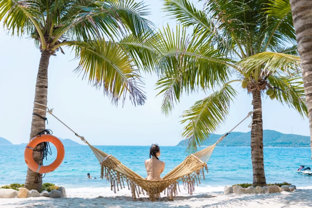 • Nằm nghỉ dưới hàng dừa: Ghế dù được bố trí dọc bãi, cho bạn không gian riêng để đọc sách, ngắm biển hoặc đơn giản là nghỉ ngơi.