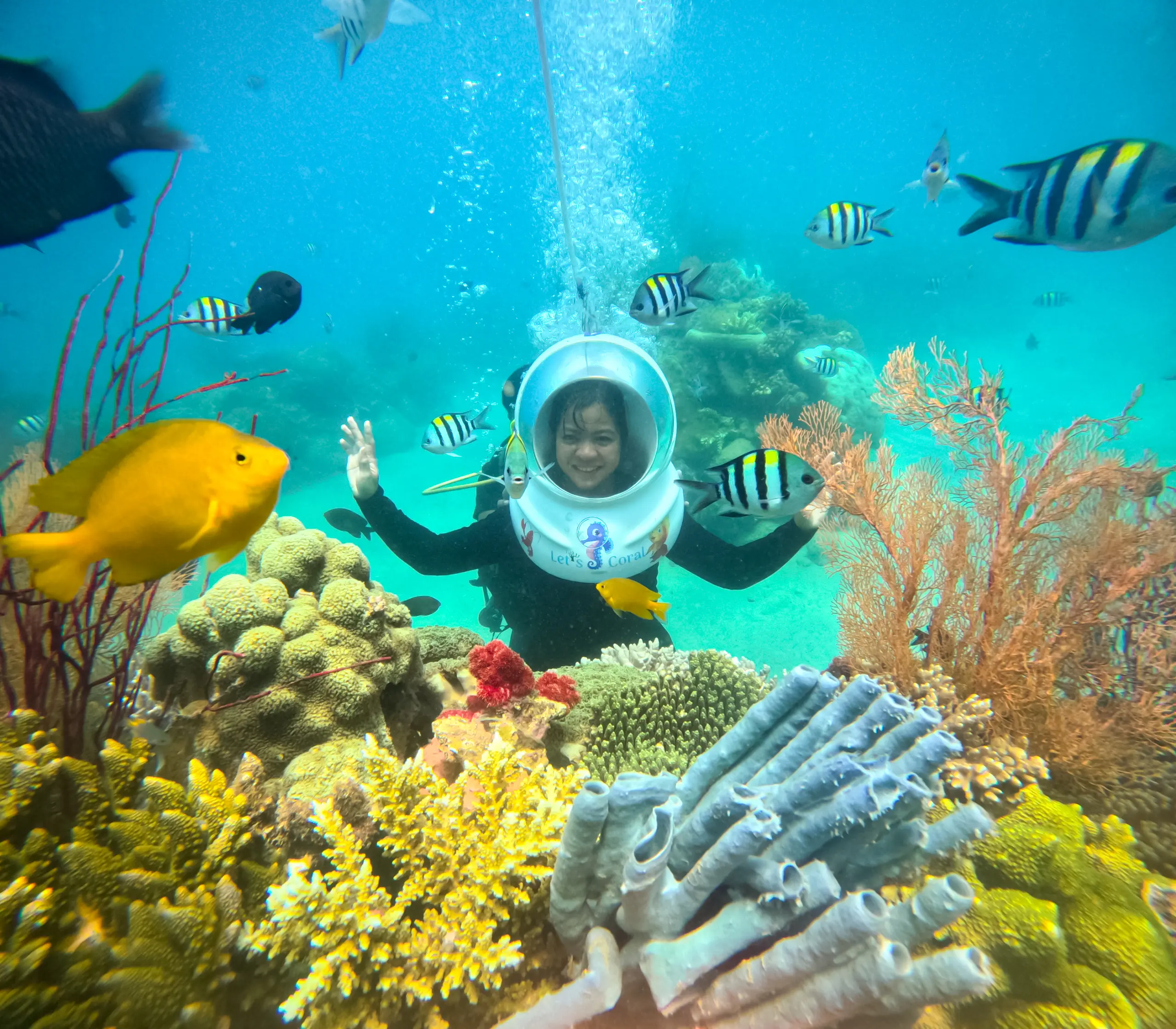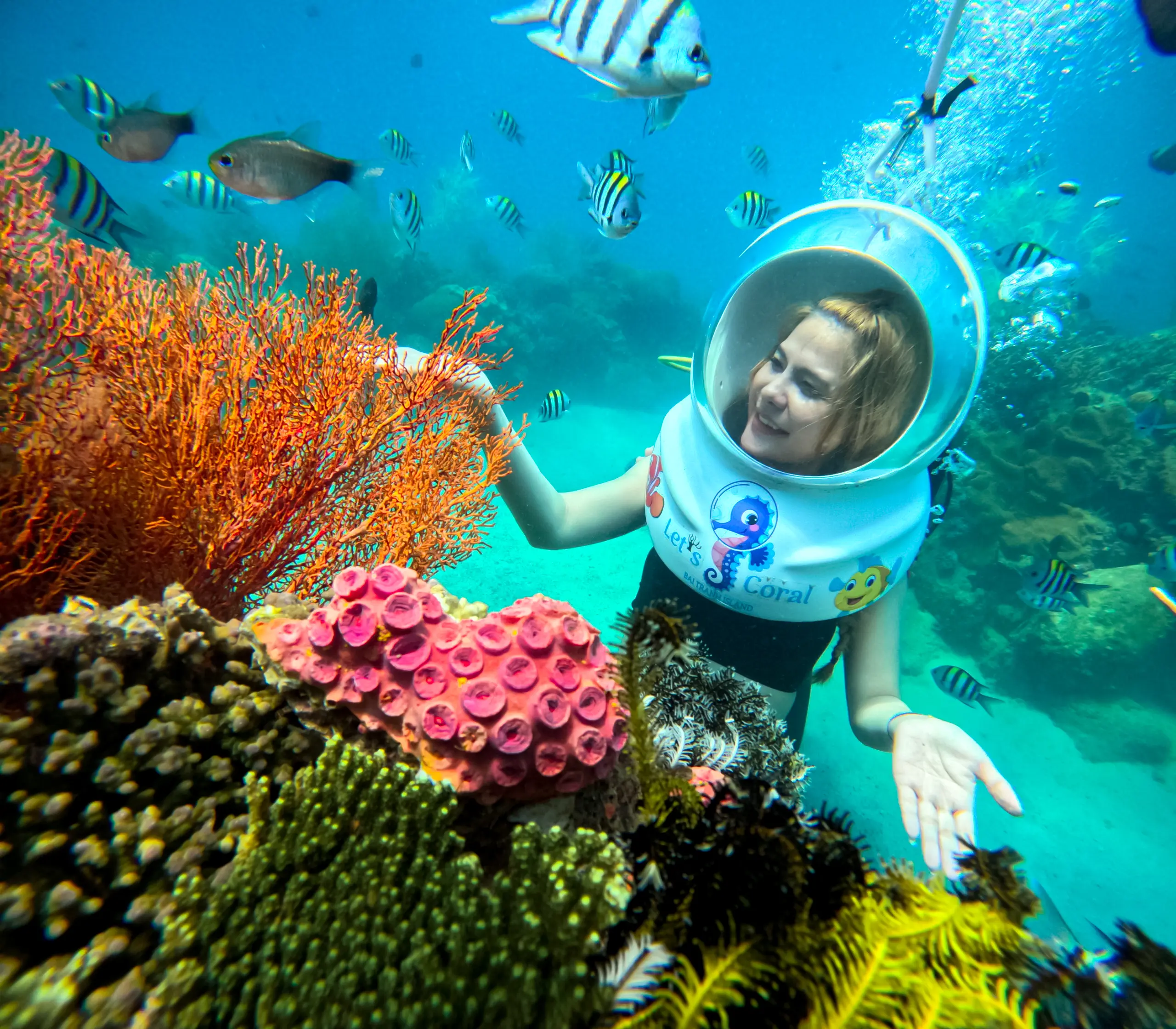 Đi bộ dưới đáy biển là sự kết hợp tuyệt vời giữa tính an toàn, dễ tiếp cận và trải nghiệm chân thực. Không cần huấn luyện dài ngày, bạn vẫn có thể chiêm ngưỡng thế giới kỳ diệu dưới lòng đại dương – từ san hô đầy màu sắc đến những đàn cá tung tăng bơi lội quanh mình.